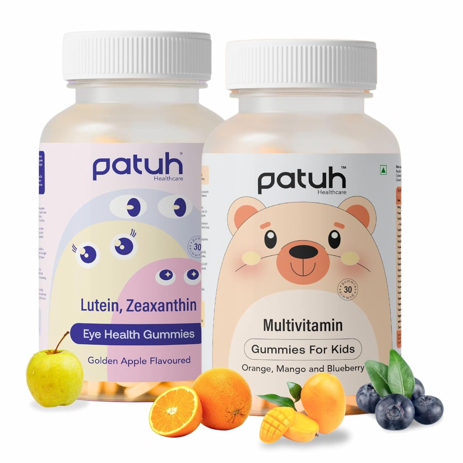 Petu Healthcare Eye Health and Multivitamin Gummies Combo for Kids and Adults – Vision, Immunity, Bone and Energy Support – Tasty Soft Chewing – Golden Apple, Orange, Mango, Blueberry